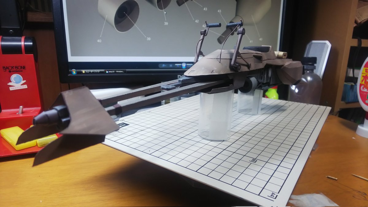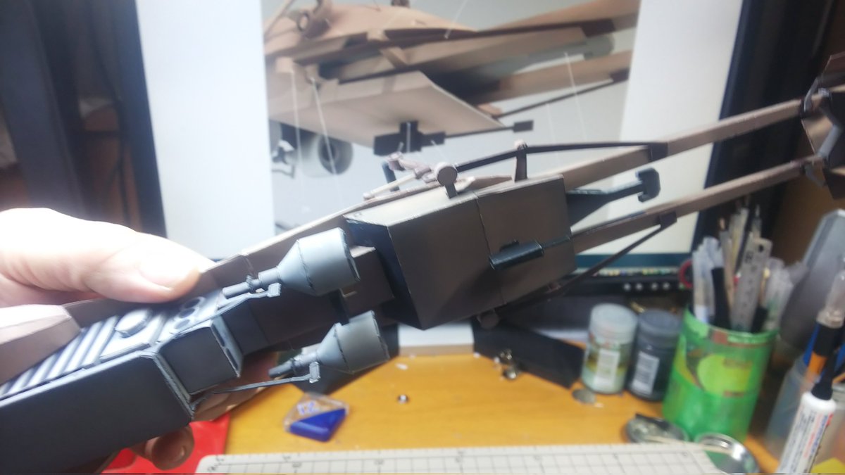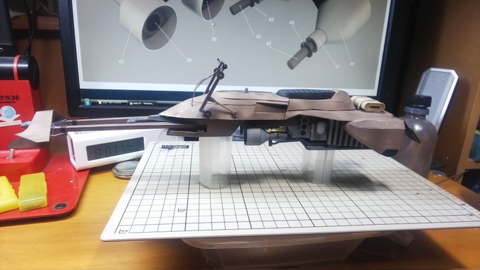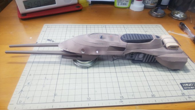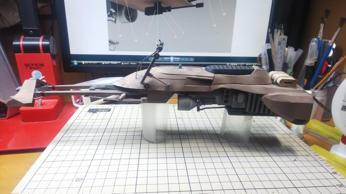 スピーダーバイク進捗 PART-07が完了しました、スピーダーバイクに武器が装備されました。 次はいよいよラストの工程です。 かなり細かいので時間がかかるかな?ラスボス登場です。 今日の作業約2時間 累計32時間 #ペーパークラフト #スピーダーバイク #STARWARSお