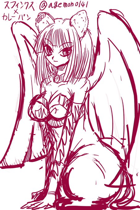 新しく考えたあげモンの下描きです。 耳をカレーパンにされてしまったスフィンクスにする予定です。 #オリジナル #イラスト #絵描きさんとつながりたい #スフィンクス #下書き #イラスト好きな人とつながりたい