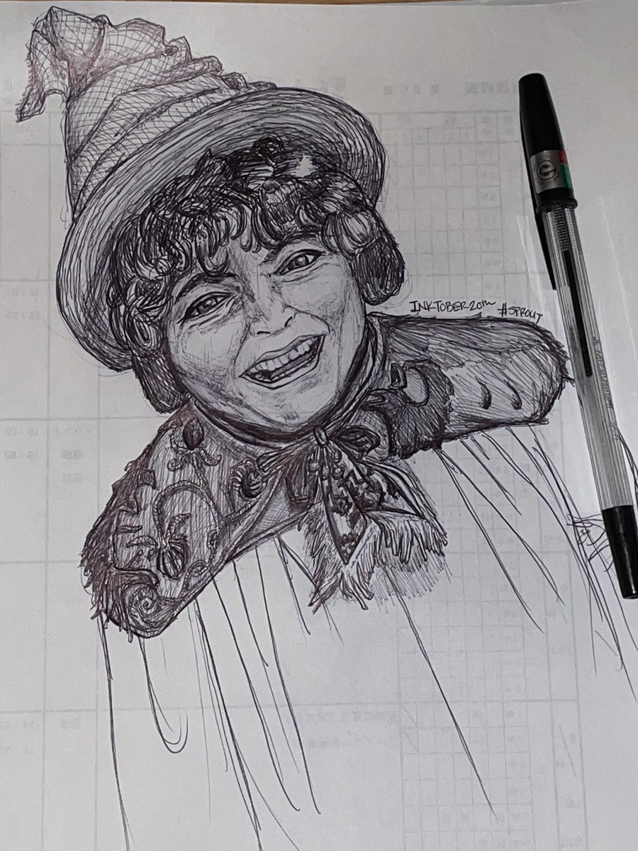 Professor Sprout, head of Hufflepuff House. Done in ballpoint pen. 薬草学の教師でハッフルパフ寮の僚艦スプラウト先生。ボールペンで描いた。 #inktober2021 #Sprout #インクトーバー2021 #スプラウト(芽)