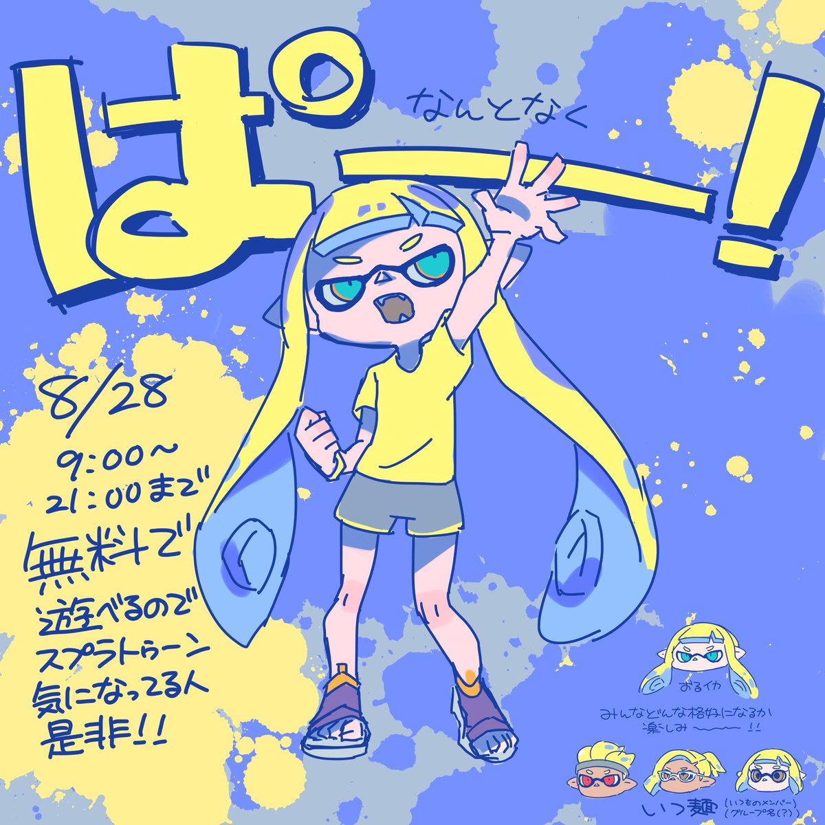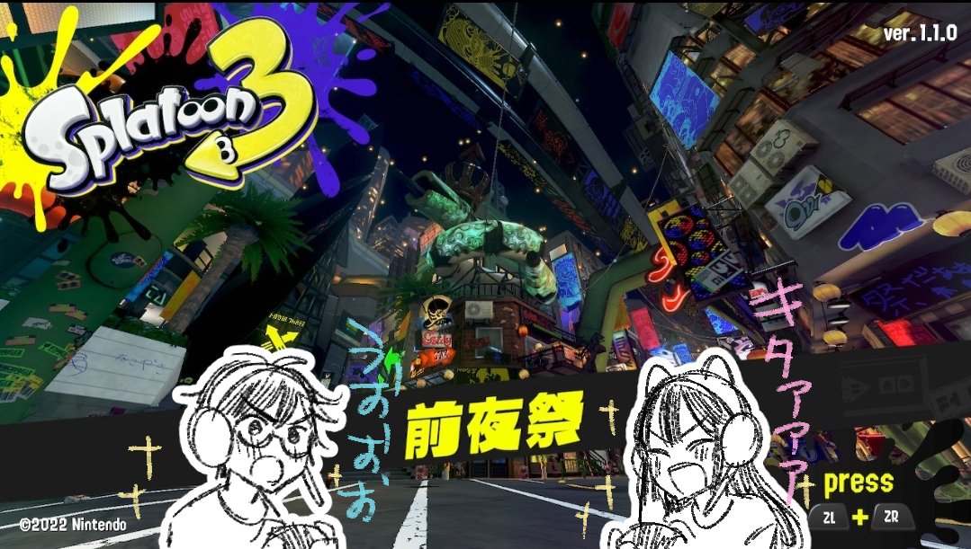 スプラ3遊びたい!!リリーズおめでとう! Happy Splatoon 3 release!!! I can't wait for playing ><)// #スプラトゥーン3前夜祭 #スプラ3前夜祭 #スプライラスト #スプラ #splatoon3fanart #splatoon3art #splatoon3