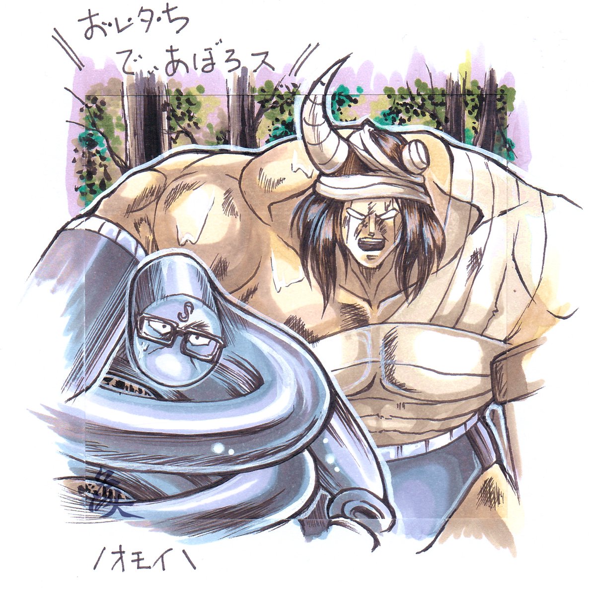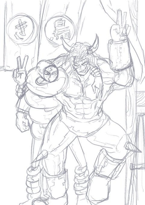 #バッファローマン 🐮率いる #7人の悪魔超人 を息子(7歳)のタッチで今描きました! 10巻の表紙風にしました。 #ステカセキング 📻 #ブラックホール 🕳 #スプリングマン #アトランティス 🐟 #ミスター・カーメン #ザ・魔雲天 🏔 #キン肉マン #キン肉マンアニメ化 #祝キン肉マン400回 twitter.com/u_muse/status/…