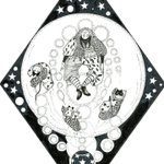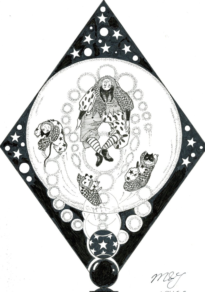 🎪🃏😸😺🐶🌡️「スポットライトって、あったかいね」💞 by《道化師と陽気な仲間たち》 #道化師と陽気な仲間たち #アトリエの系譜S #アナログ #モノクローム #オリジナルキャラクター #picturebookillustration #挿絵 #マンガスタイルイラスト #ペン画 #スポットライト #アクロバット