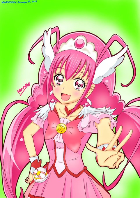 完成✨ スマイルプリキュアよりキュアピース✌️描きました☺️ 可愛い女の子描くの楽しい(˶'ᵕ'˶ )︎ #スマイルプリキュア #キュアピース #precure #お絵描き #イラスト #絵描きさんと繋がりたい