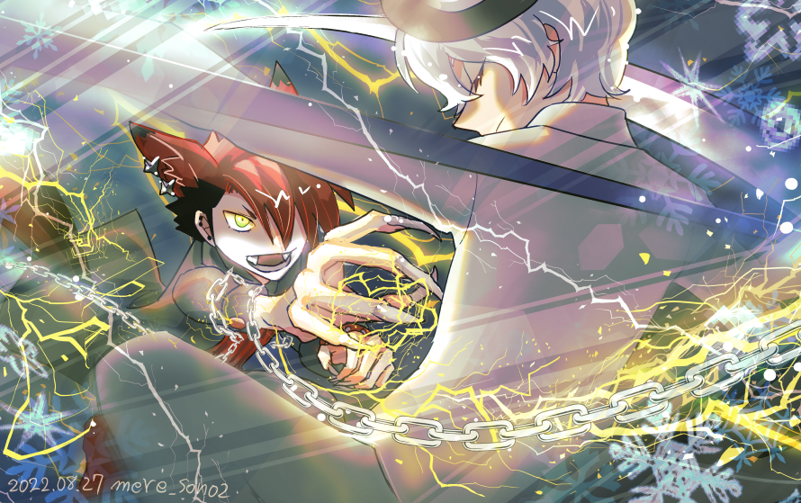 #スマプロギャラリー まし&ななの日なので先日の診断メーカーお題を描きました 武器を持って対立するハロウィンまし&ななです チェーンと鎌で雷と氷雪 お題にいいねRTくださった方ありがとうございました! twitter.com/mere_sono2/sta…