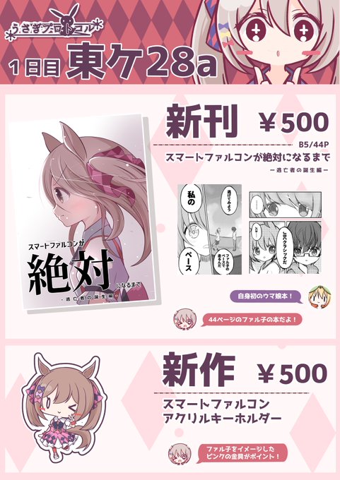 ■08/12(土)1日目 東ケ-28a お品書きです! スマートファルコンの新刊とアクリルキーホルダーを頒布いたします! 新刊の通販はコチラ 🍈→melonbooks.co.jp/detail/detail.… なんと!電子決済使えます! 他ジャンルですが既刊も各少部数持っていきます #C102 #C102お品書き #ウマ娘 #スマートファルコン