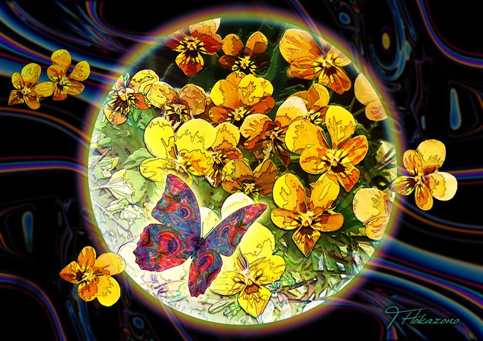 いつもの公園の花壇で見つけたスミレと蝶 近所で見つけた花素材は5〜600点あるので バリエーション作品は1000店以上作れそう #イラスト #花 #スミレ #美術ネットワーク #絵描きさんと繋がりたい #イラスト好きな人と繋がりたい #みんなで楽しむTwitter展覧会 #美術ネットワーク #artilljp