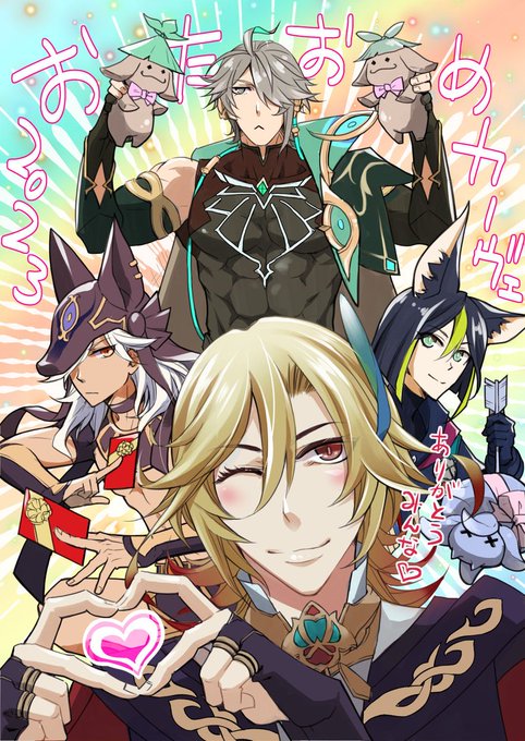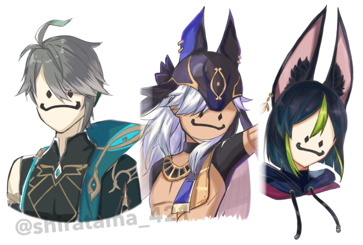 ティナリが描けたところで…… (実装済)スメール男子のアランナラ顔まとめじゃああああ!!!!!! セノとティナリのポーズは立ち絵から持ってきたよ(งت)ว リプ欄に人間の顔ver.置いときます #原神イラスト #GenshinImapact #スメール男子