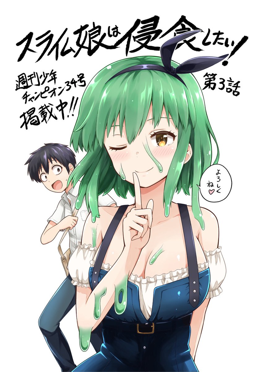 本日発売の週刊少年チャンピオン34号にて『スライム娘は侵食したい!』第3話&センターカラー掲載されております!スライム娘のミドリちゃんと陰キャ男子日影くんの共同生活本格スタート!よろしくお願いします! #スライム娘は侵食したい #スライム娘