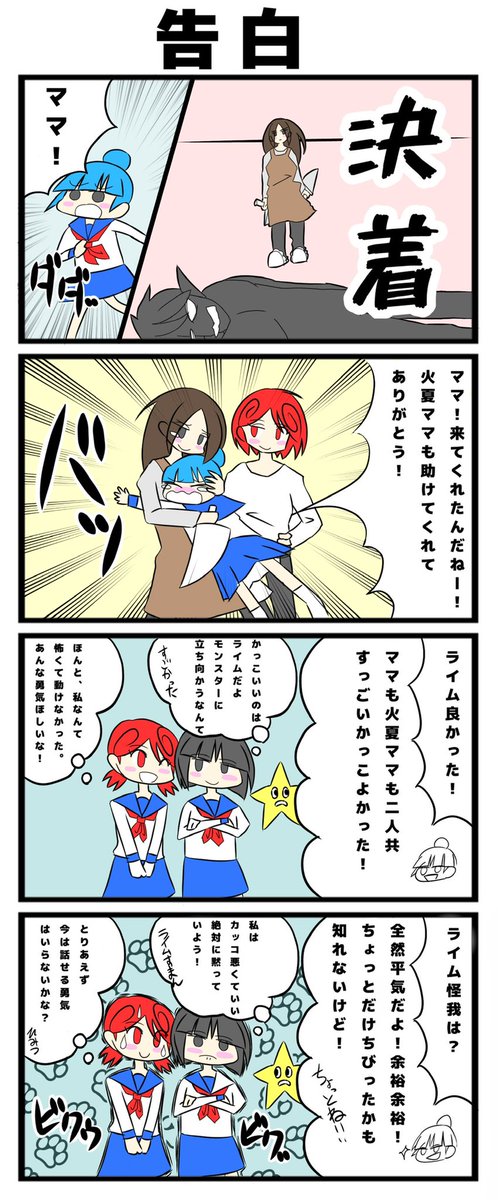 スライム父さん。 第68話『守りたい』 第69話『守るべき子』 #スライム父さん #illustration #イラストアニメ #四コマ #異世界 #絵描きさんと繋がりたい #漫画が読めるハッシュタグ #創作漫画 #落書き