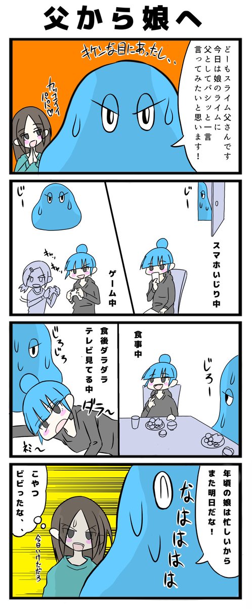 スライム父さん65話〜67話まとめ。 #スライム父さん #illustration #イラストアニメ #四コマ #異世界 #絵描きさんと繋がりたい #漫画が読めるハッシュタグ #創作漫画