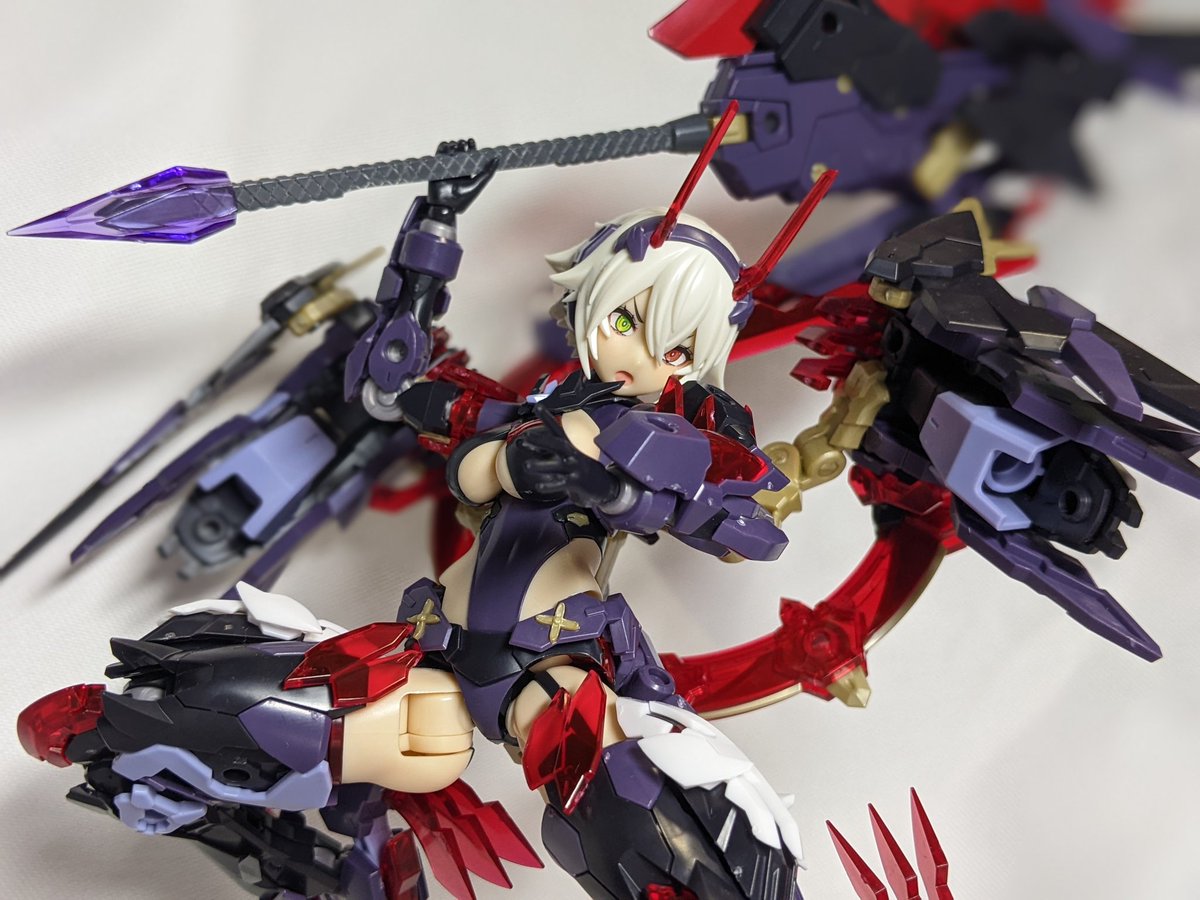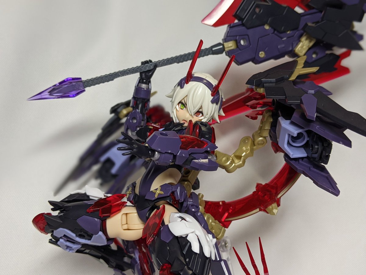スラアク再現残りの写真。属性開放時の剣先の曲がり方の再現が完璧。 14種再現してきたけど、凄く楽しかった。 よくモンハンの画面とメガミを照らし合わせながら再現しようとして気がついたらクエスト行ってたw #スラッシュアックス #メガミデバイス #スサノヲ #モンハンライズ #MSG #KOTOBUKIYA