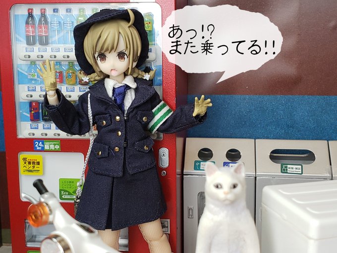 #特になんでもない六角汐里さん しおりん巡査 『あっ⁉️私のパトラッシュ号にまた猫🐱が...😠💢』 ・・・ 『ってか、猫🐱めっちゃスリム~長っ⁉️😳』 #スリムの日 #アサルトリリィ #アサルトリリィドール部