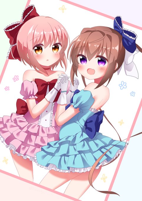 とある【まちカド魔法少女】姿のフレッシュピーチな花名ちゃん!&🎂今年もお誕生日おめでとう!!🎉 (🌸たまさくらちゃん姿のたまてちゃんもいるぞ!) #一之瀬花名生誕祭2023 #スロウスタート #まちカドまぞく