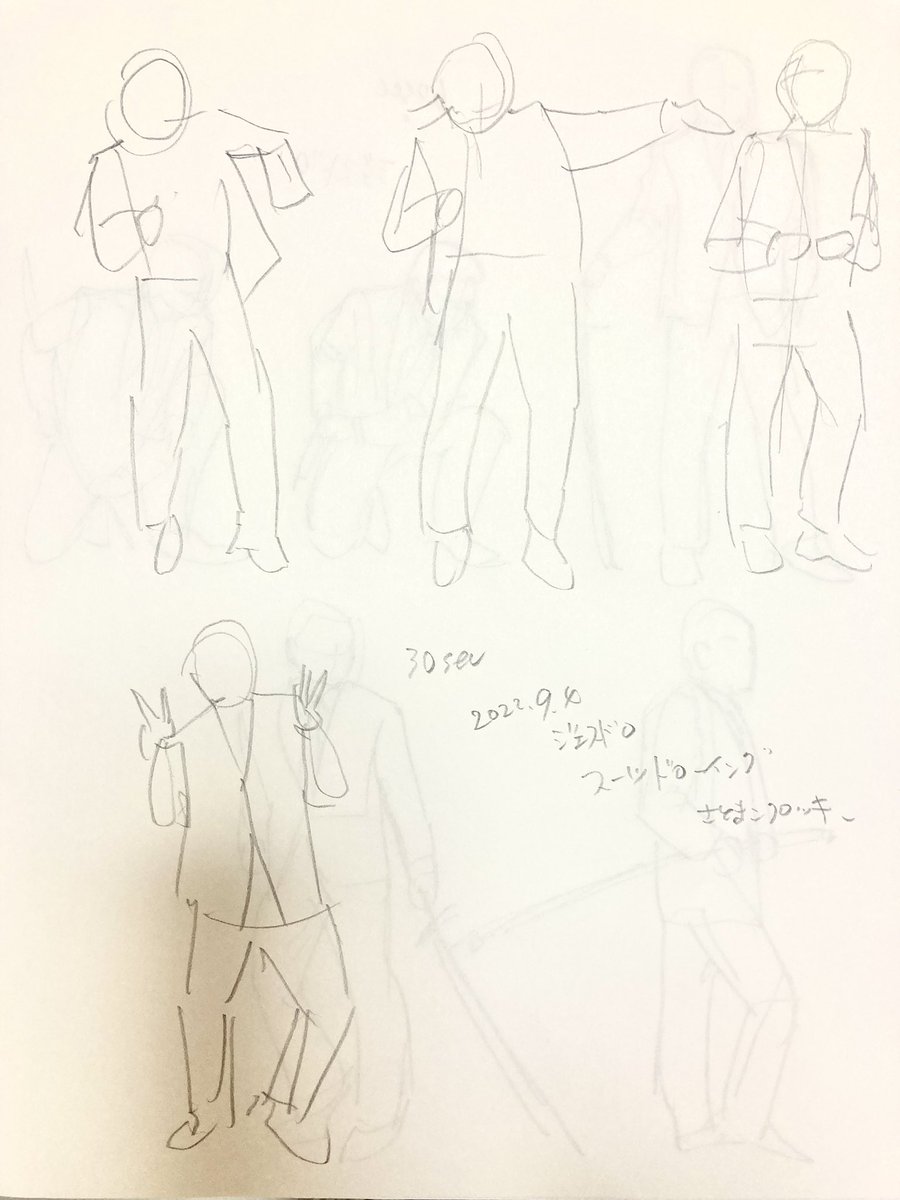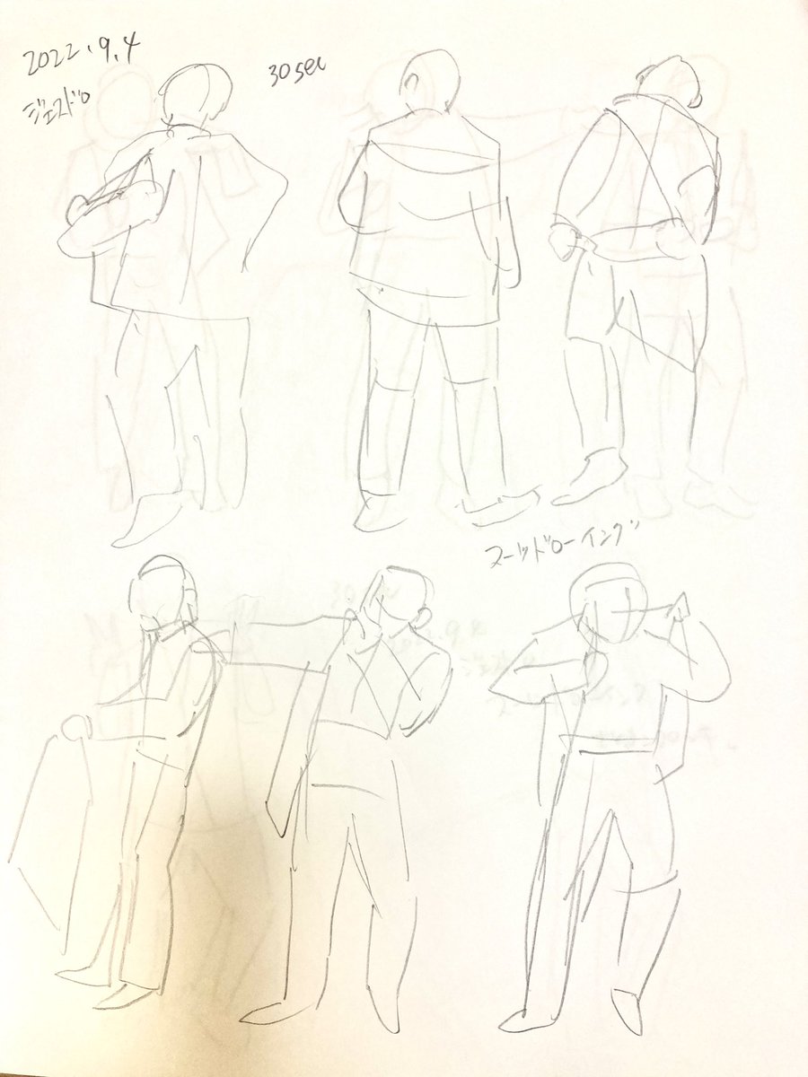 砂糖ふくろう先生のスーツドローイングWSの冒頭2minsx5ポーズ。 いきなり複雑な着衣が来ると一気に焦って迷い線が増えるのをこのセミナーで克服したい…💥 #ふくろうセミナー #ジェスドロ #スーツドローイング #sketch #スケッチ #イラスト #illustration