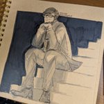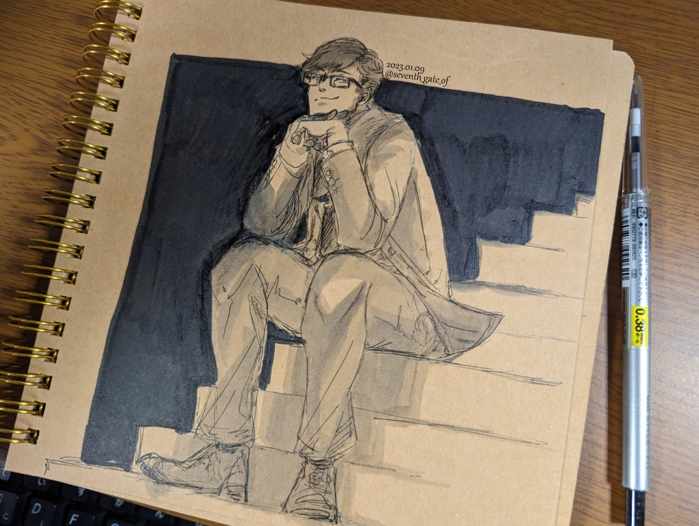 #スーツ版深夜の真剣創作60分一本勝負 2023.06.26リアタイ参加です! 本日はAYAさんのお写真お借りしました✨いつもよりずっと線を少なく描いてみるチャレンジをしました。このお写真…椅子と人物と机の向きと…難しい!楽しい!リベンジしたーい!