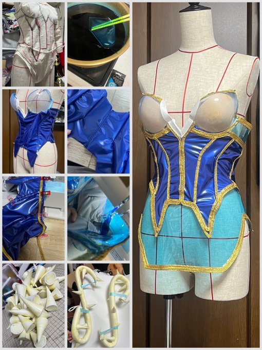 WCS日本代表選考会で作ったタイバニ衣装!まずはブルーローズから! 青の布はグロス2way くびれをを出したかったのでコルセット用のボーンが入ってます🙌(首にも入ってるよ) 青透明の部分は、色が無かったからビニールシートをダイロンマルチで染めた! あとは気合いで縫った。 #スーパーぞおりタイム