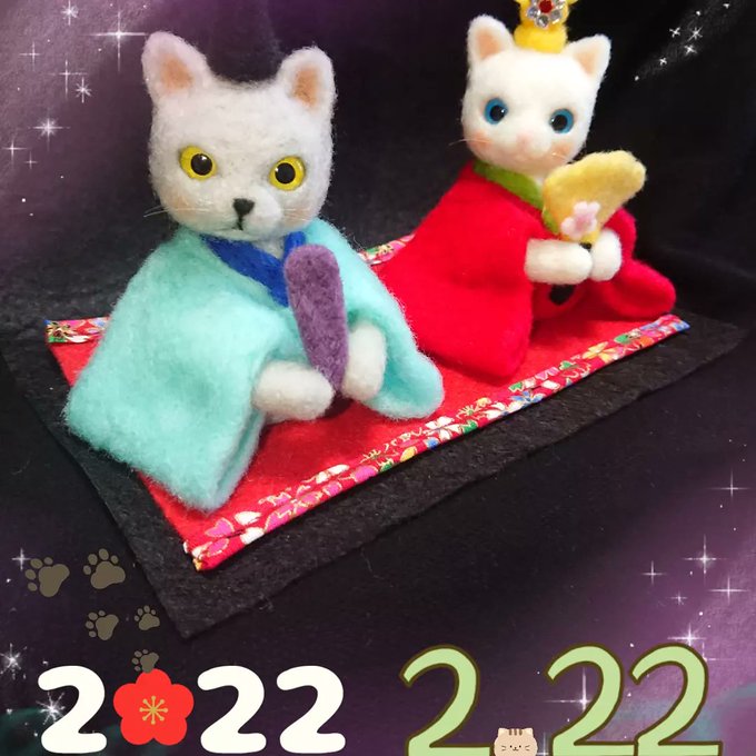 ᓚᘏᗢスーパーにゃんこの日ᗢᘏᓗ おひにゃ様完成しました( •ω•ฅ ) ラクマ、メルカリショップ、PayPayフリマにて出品中ですฅ🐾.˚೨✻₊ #猫の日 #ねこの日 #にゃんにゃんにゃんの日 #スーパーにゃんこの日 #羊毛フェルト #羊毛フェルト作品 #雛人形