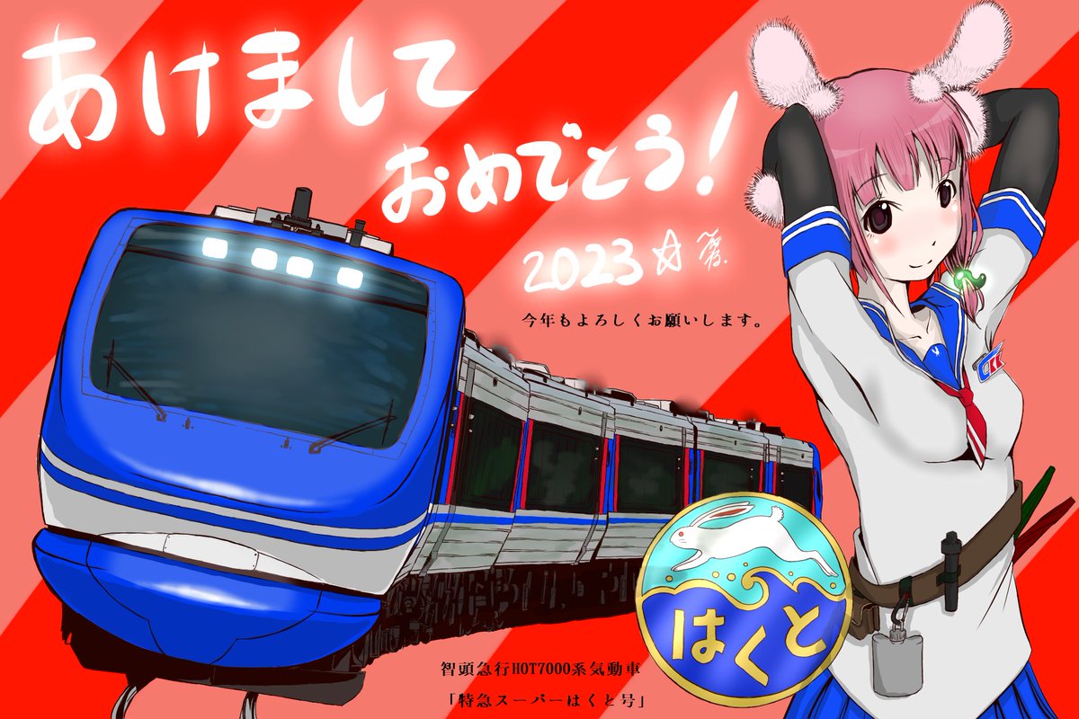🎍㊗️新年 #あけましておめでとう🎍 記念すべき1作目は卯年🐇にちなんで、#スーパーはくと です🐰🚃✨ 西日本の車両イラストを多めに描く事を 目標にしています♪ 今年もよろしくお願いします!! ✨🚃2023年出発進行!!🚃✨ #あおぞら鉄道 #あおぞら鉄道3番線 #HappyNewYear2023 #イラスト