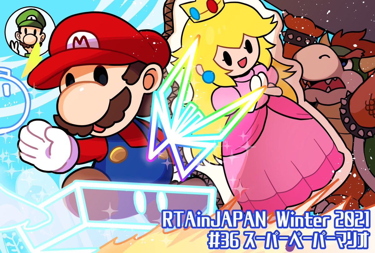 【RTAinJAPANファンアート㊱】 ペーパーマリオ大好きオタクなのでこれが走られただけで超興奮したのに内容も綺麗に走ってて最高でした…!!!走者さんも解説さんもスーパーペーパーマリオ好きなのが伝わってきて楽しかった~4時間サクっと見れてしまった!! #RTAinJapan #スーパーペーパーマリオ