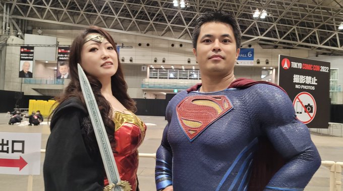 ジャスティスリーグ来た~👍️✨ マリマリさんワンダーウーマンと スーパーマン&グリーンランタン 撮らせて頂いてありがとうございました! #東京コミコン2022 #東京コミコンコスプレ #ワンダーウーマン #スーパーマン #グリーンランタン #ジャスティスリーグ #ご本人に届け