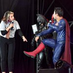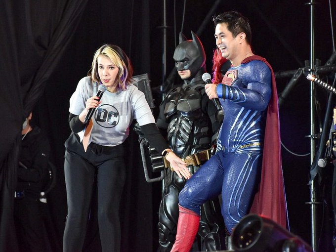 コスプレステージのときの写真 GOWさんムキムキな腕に興味持ってたみたいだけど、パチモンなんだよなー 📸@SUGIMOGISU1 #東京コミコン2022 #superman #スーパーマン #東京コミコンコスプレ