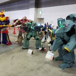 #スーパーロボコス大展 2022 ジェイアーク&ゴールドライタン @toronaga_nyamo とろながさん シグー・ディープアームズ&リゼル @yantsukechune やんつけさん 若い方には2枚目分かりませんね。 コレが良いのです。完璧なフォームなのです!