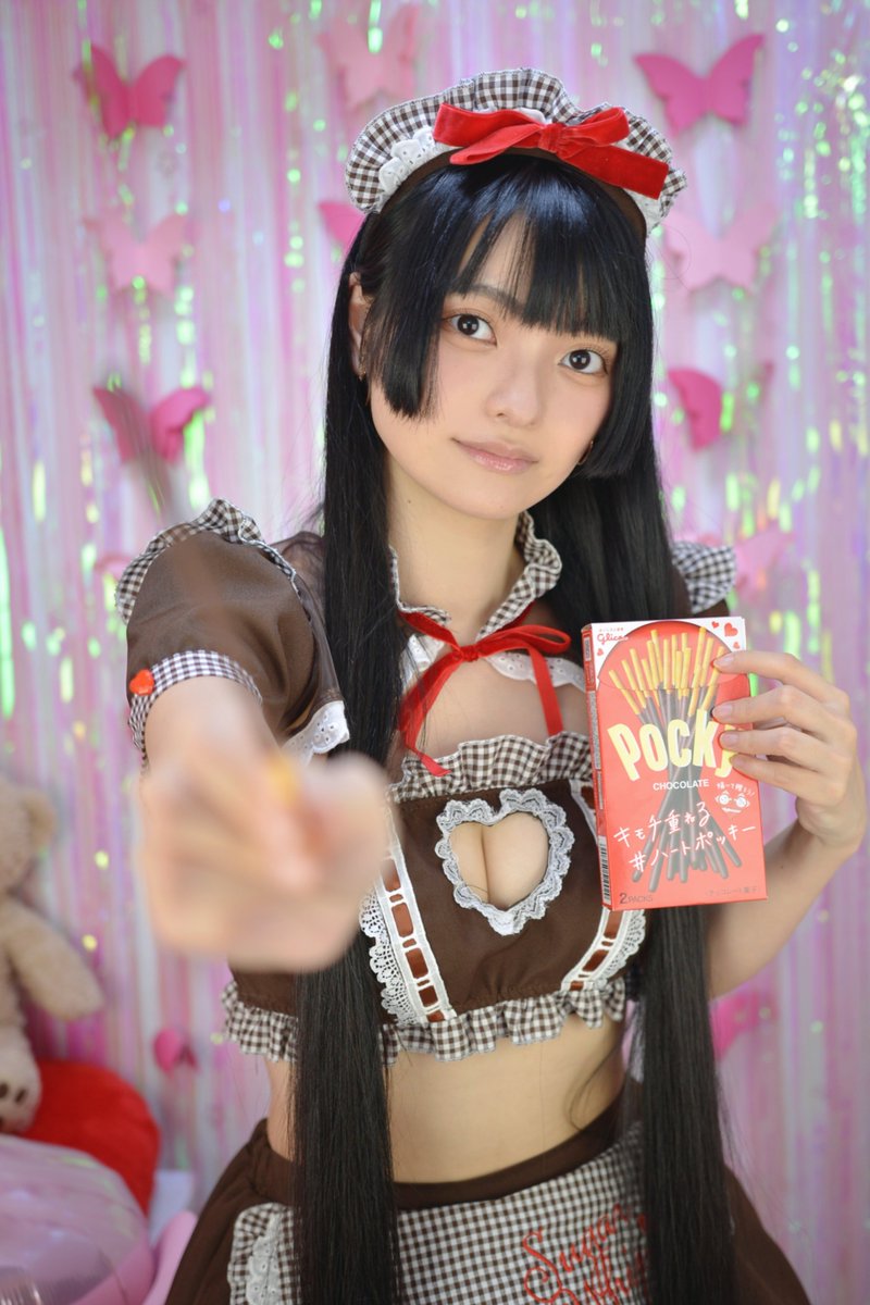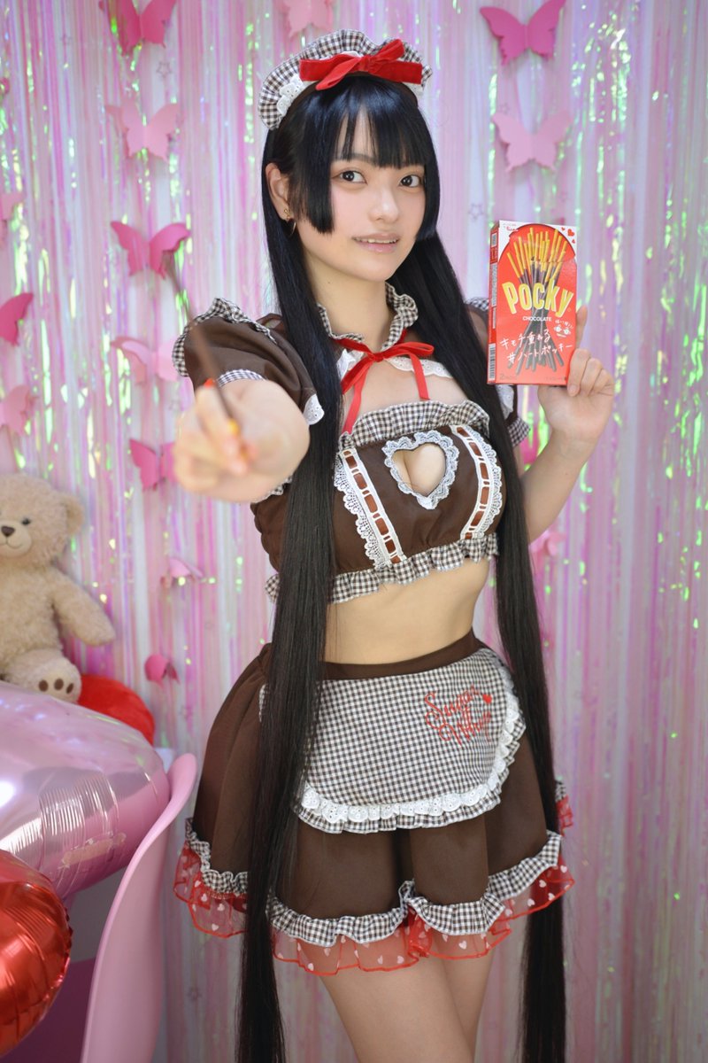 ︎💕︎🍫Happy Valentine🍫︎💕︎ 「 ん!ポッキーたべよ! 」 #ハッピーバレンタイン #バレンタイン #バレンタインデー #ハートポッキー #黒髪ロングヘア #スーパーロングヘア