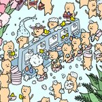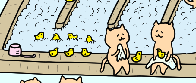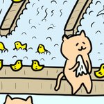 広い岩風呂ではみんな遊んでいます👍 鳥も一緒に遊んでいます✨ 猫は狭いとこが好きなので、混雑してるくらいが居心地がいいのです✨ #イラスト好きな人と繋がりたい #絵描きさんと繋がりたい #イラスト #illustration #illusRT #スーパー銭湯 #温泉 #最強寒波
