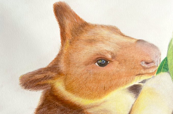先にこの子完成(´∀`)✨ #セスジキノボリカンガルー🦘 木の上で生活するという珍しい子! もふつやが可愛くて一目惚れしました☺️ タリスマンさん(@talisman_028 ) に今回もお写真お借りしました✨ ありがとうございました🙇♀️ #ズーラシア #色鉛筆