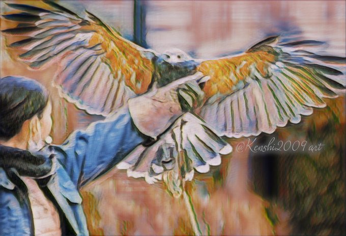翼を広げたハリスホーク🐦 よこはま動物園ズーラシア #ズーラシア #絵画 #水彩 #油絵 #みんなで楽しむTwitter展覧会 #drawing #illustration #oilpainting #watercolor #photoshop #art #アート #adobe #ゲーム好きと繋がりたい