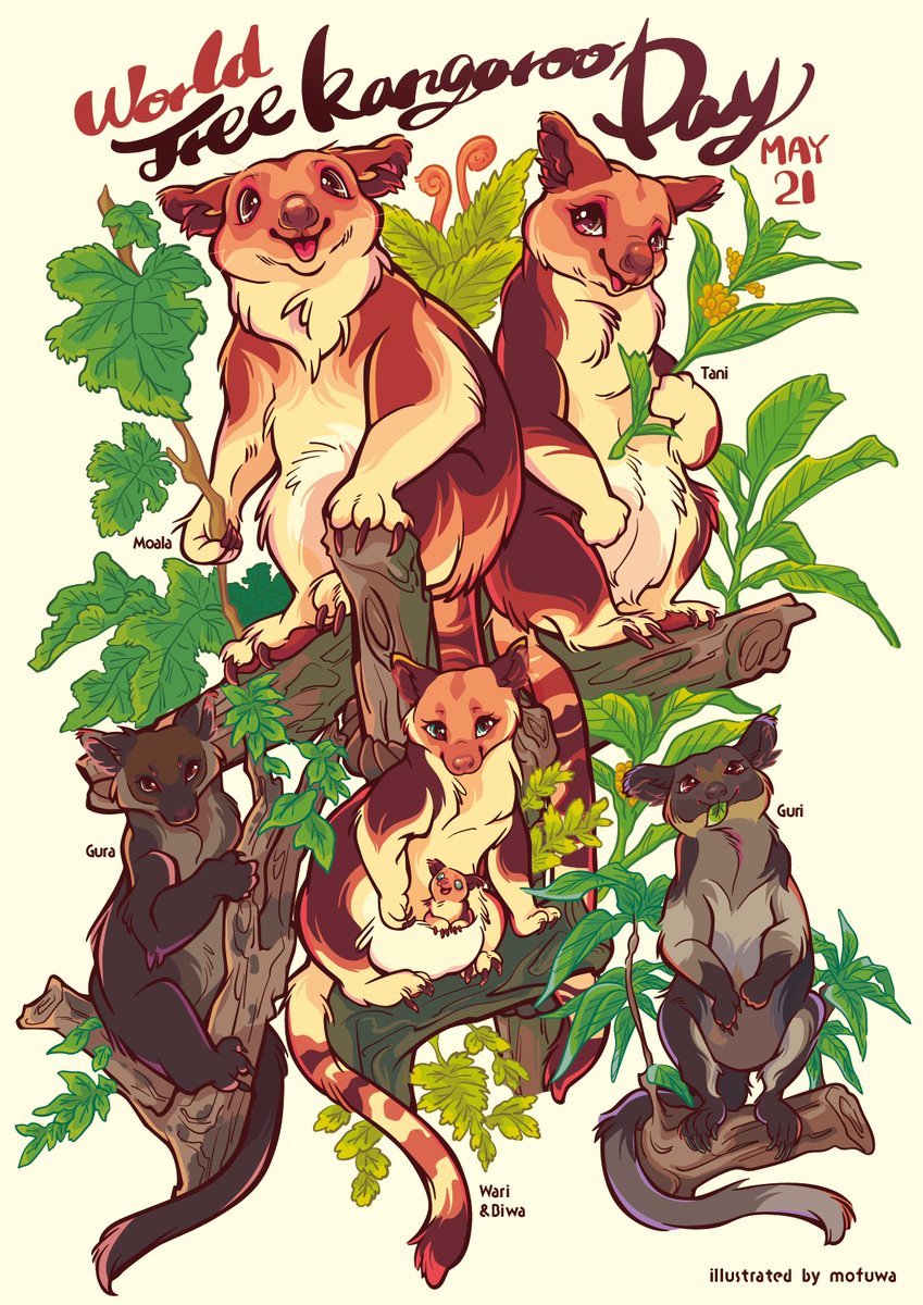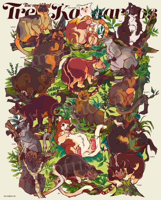 世界キノボリカンガルーの日‼️ #worldtreekangarooDay🦘🌴 ということで、歴代の #ズーラシア のキノボリカンガルーたちを描かせていただきました! この可愛くて、不思議で、美しい生き物たちを、もっと知って欲しい🦘そして、見てほしい…日本で見れるのは、#ズーラシア だけだよ!!