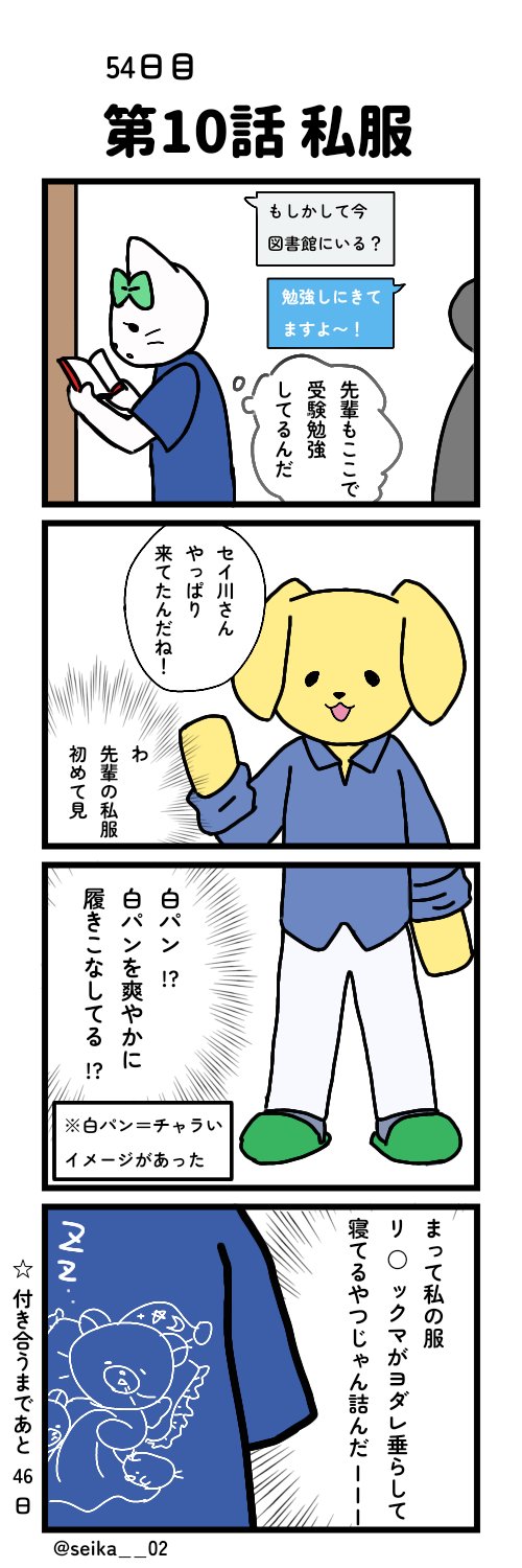 100日後に付き合うセイカ 54日目 第10話 私服 ⬇カレ氏サイドのおまけ付 なので是非🙌🏻💞⬇ note.com/seika__02/n/nb… #セイカの漫画 #惚気垢さんと仲良くなりたい #漫画が読めるハッシュタグ #エッセイ漫画