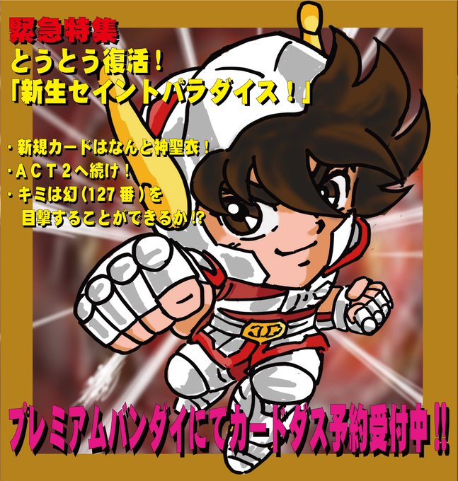 オレは逃げも隠れもしないぜ! そしてこれが今プレバンで予約を受付しているオレのあたらしい聖闘士カードだ! (これはもちろん模写) #センパラ火時計 #セイントパラダイス #カウントダウンイラスト参加者募集中