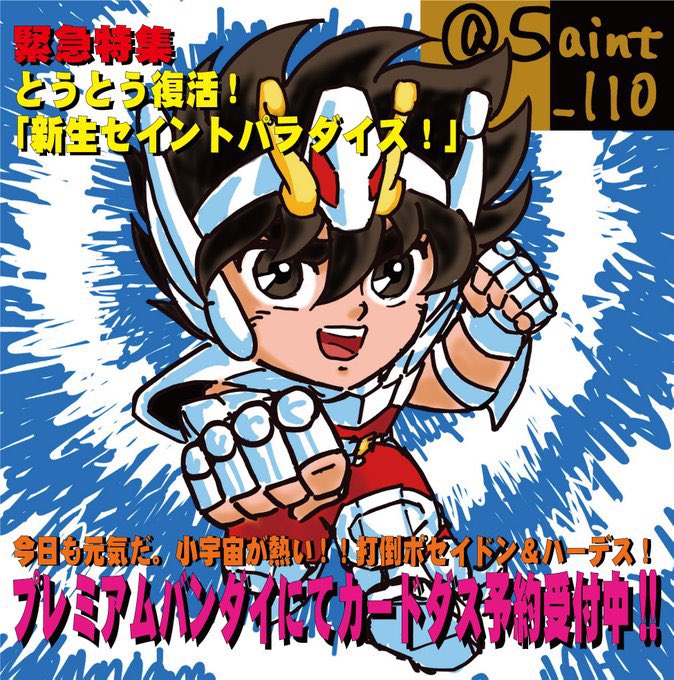 110さん(@saint_110)のセンパラ復活記念企画に参加させていただきまーす! 『新生セイントパラダイス ~よみがえれ! 英雄伝説~』 ご予約は1月13日(木)まで!! 火時計絵参加者募集中とのこと☆110さんにお声掛けを‼ #センパラ火時計 #セイントパラダイス #カウントダウンイラスト参加者募集中