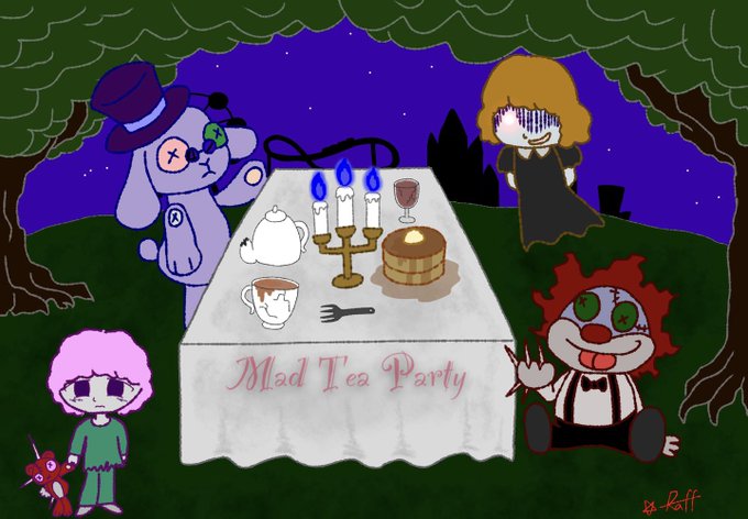 「セカオワドームツアーの世界観予想のイメージ」 廃墟の遊園地の 幽霊と人形たちの狂気のお茶会 #セカオワ #sekaowart #イラスト #illustration #廃墟の遊園地 #ファンタズマ #セカオワアート #セカオワファンアート