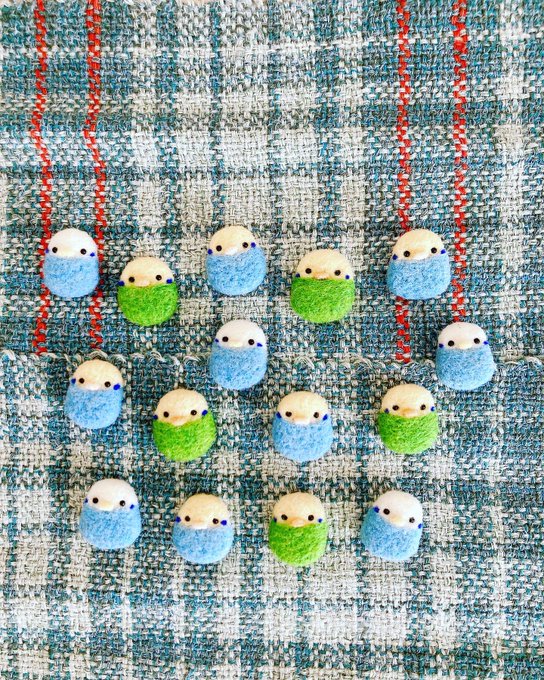 #セキセイフェスティバル ✨ 近鉄百貨店奈良店 3/23~に向けて 絶賛チクチク中✨ こちらは、毎度おなじみミニクリップ✨😊 #羊毛フェルト #ことりカフェ #セキセイインコ #rookの仲間たち #クリップ