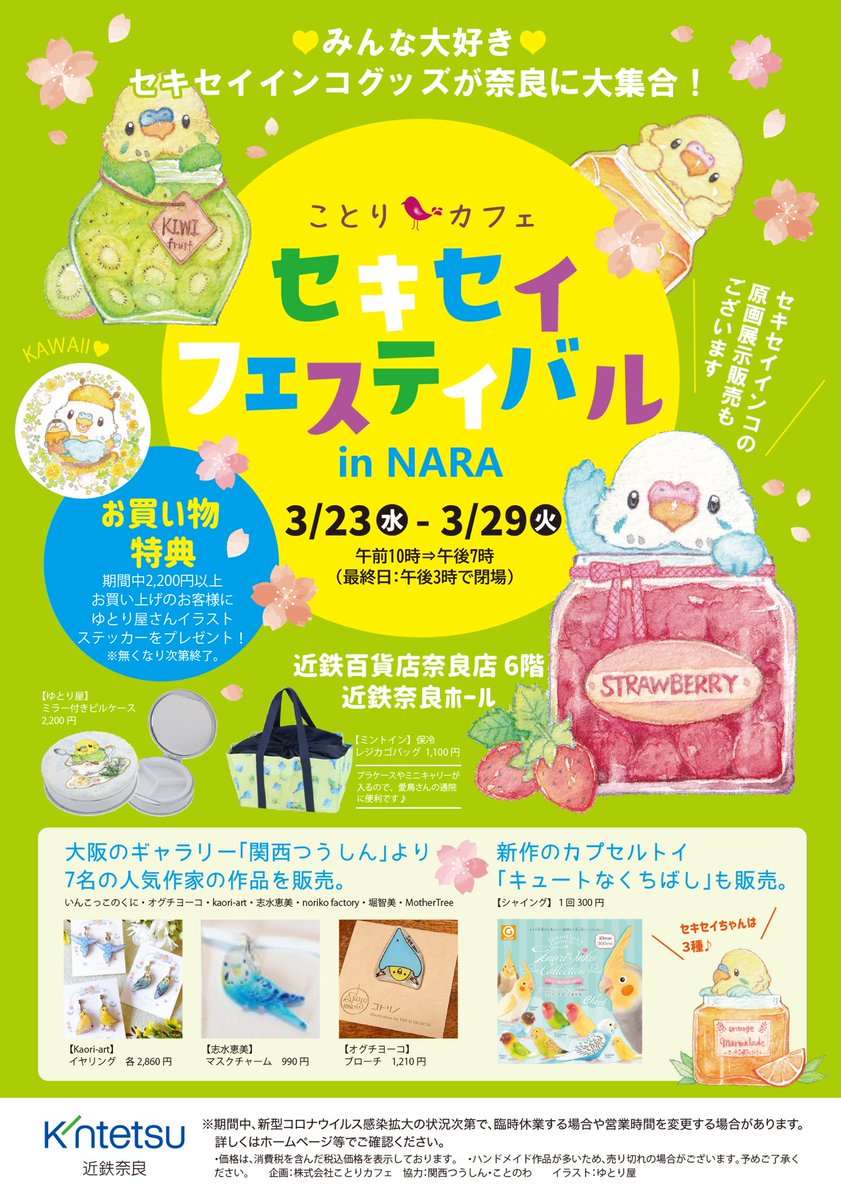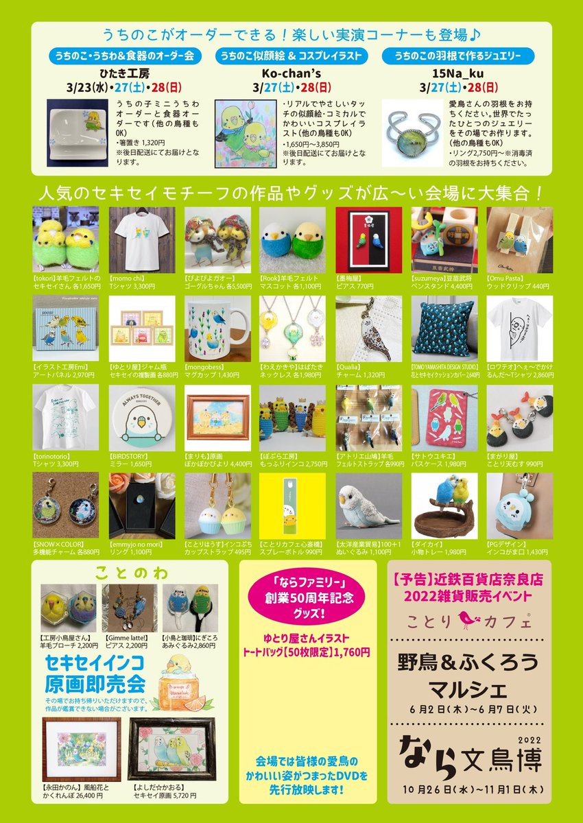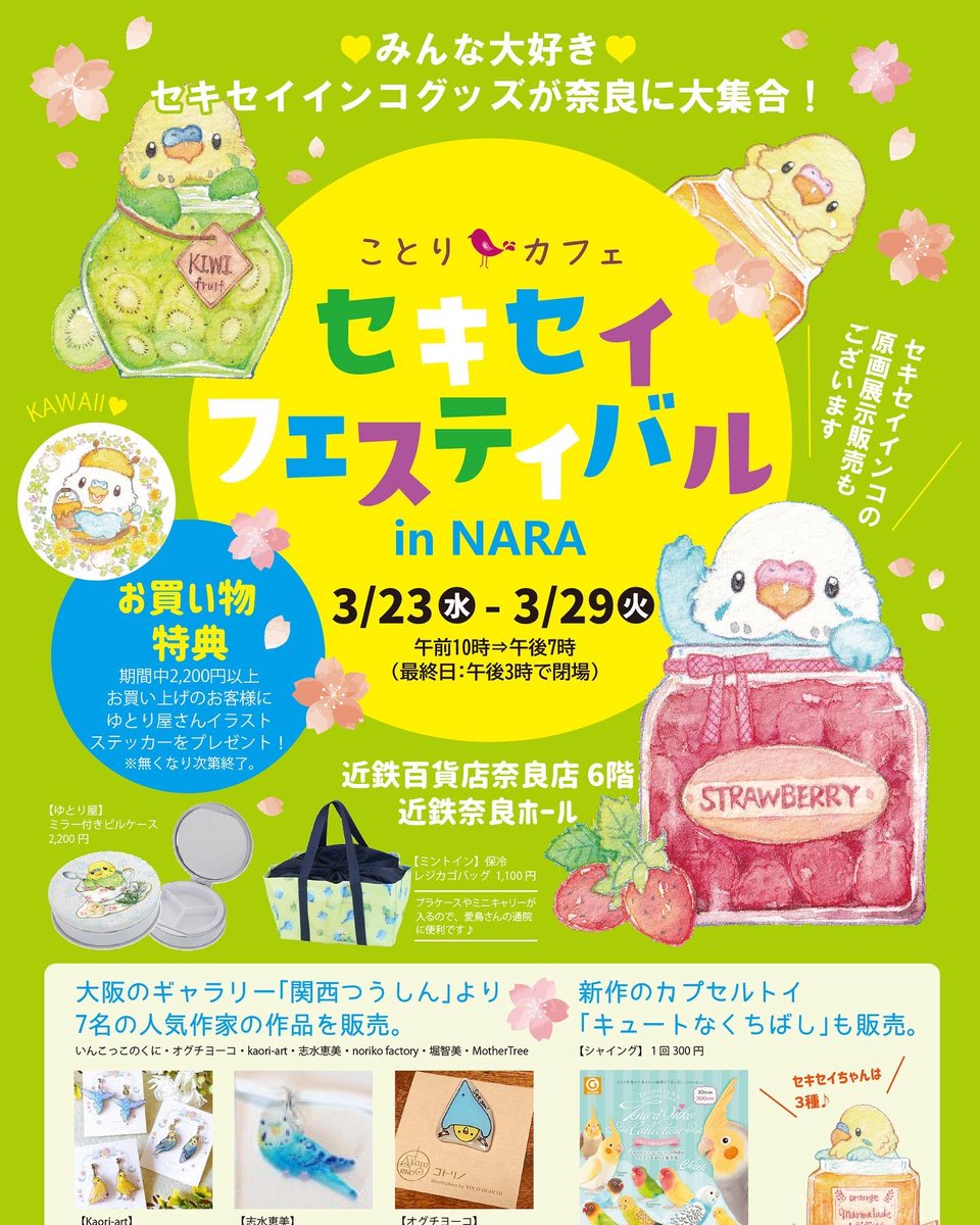 #セキセイフェスティバル ✨ はじまりました〜✨ @Emigomasan 様から画像をいただきました。 29日まで、近鉄百貨店奈良店です。 セキセイグッズオンリーのイベントです。どうぞ、皆様、心ゆくまでお楽しみください。✨😊✨ #羊毛フェルト #ことりカフェ #セキセイインコ #rookの仲間たち
