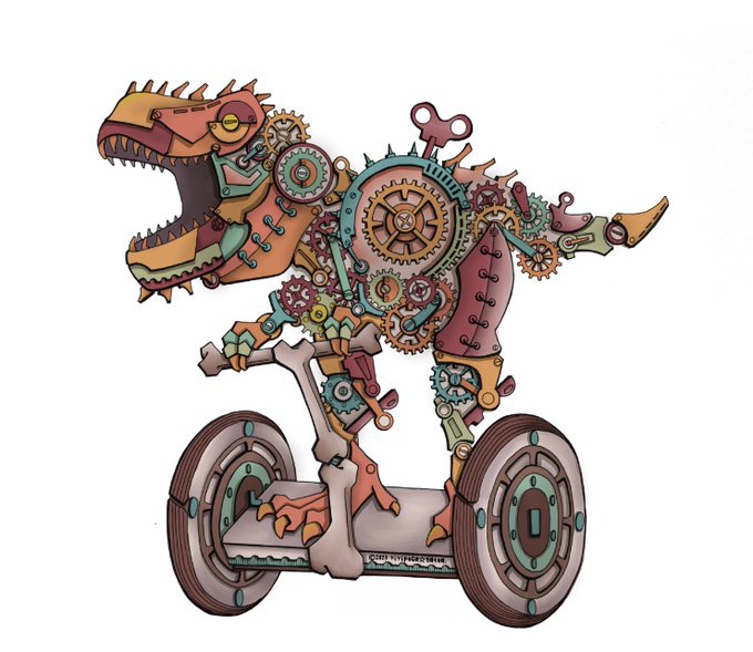 お疲れ様でした✨✨ ゆっくりお過ごしください(๑˃̵ᴗ˂̵) ⚙T-Rex⚙ #ティラノサウルス #歯車イラスト #スチームパンクイラスト #セグウェイ #絵師さんと繋がりたい #誰かの性癖にさされ