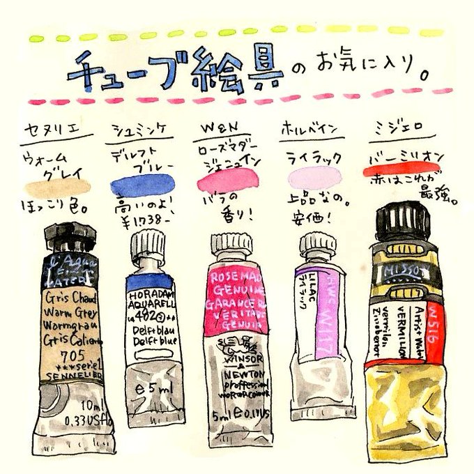 #1日1絵 #TAMA1日1絵 の57日目。チューブ絵の具のお気に入りをご紹介🖌1本2000円近くするものは、ものすごーく緊張して使っていますw #セヌリエ #シュミンケホラダム #ウィンザーアンドニュートン #ホルベイン透明水彩 #ミジェロ #透明水彩