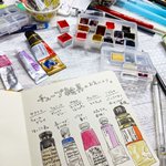 ▼業務連絡 離席します🏃♀️14時前にはまた描き始めるのでよろしくお願いします😌 今日は17時まで! #画材と文具の小さな商店街 #シュミンケ #セヌリエ #水彩画 #イラスト twitter.com/i/web/status/1…