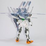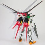 EGストライク711カラー完成。メインカメラは箱のCGを見ると水色っぽいからその通りに。目はいつも通りに周囲の黒を濃くする作業をしたら暗くなっちゃったから適当なシール余白を使った。 #ガンプラ #ガンプラ好きと繋がりたい #ガンプラの画像貼るとRTされると聞いて #セブンイレブン限定ガンプラ