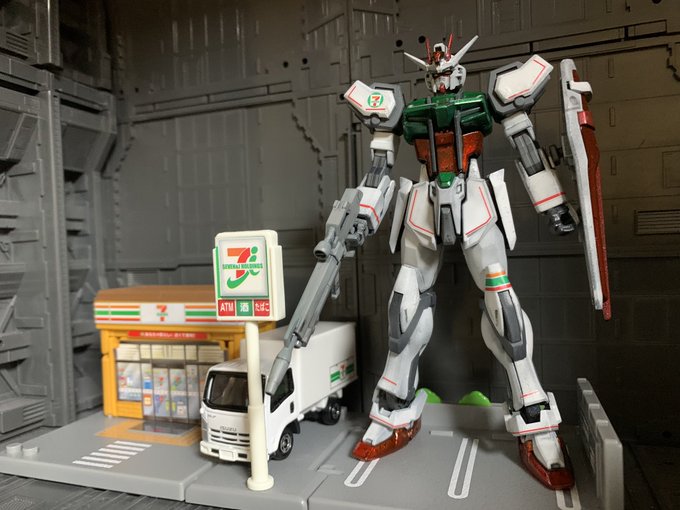 セブンイレブンストライク とりあえず作ってみました♪ 思ったよりもいい感じ❤ もう少し細かいとこ塗装してみようかな #ガンプラ #ガンプラ好きとつながりたい #ガンプラの画像貼るとRTされると聞いて #セブンイレブン限定ガンプラ