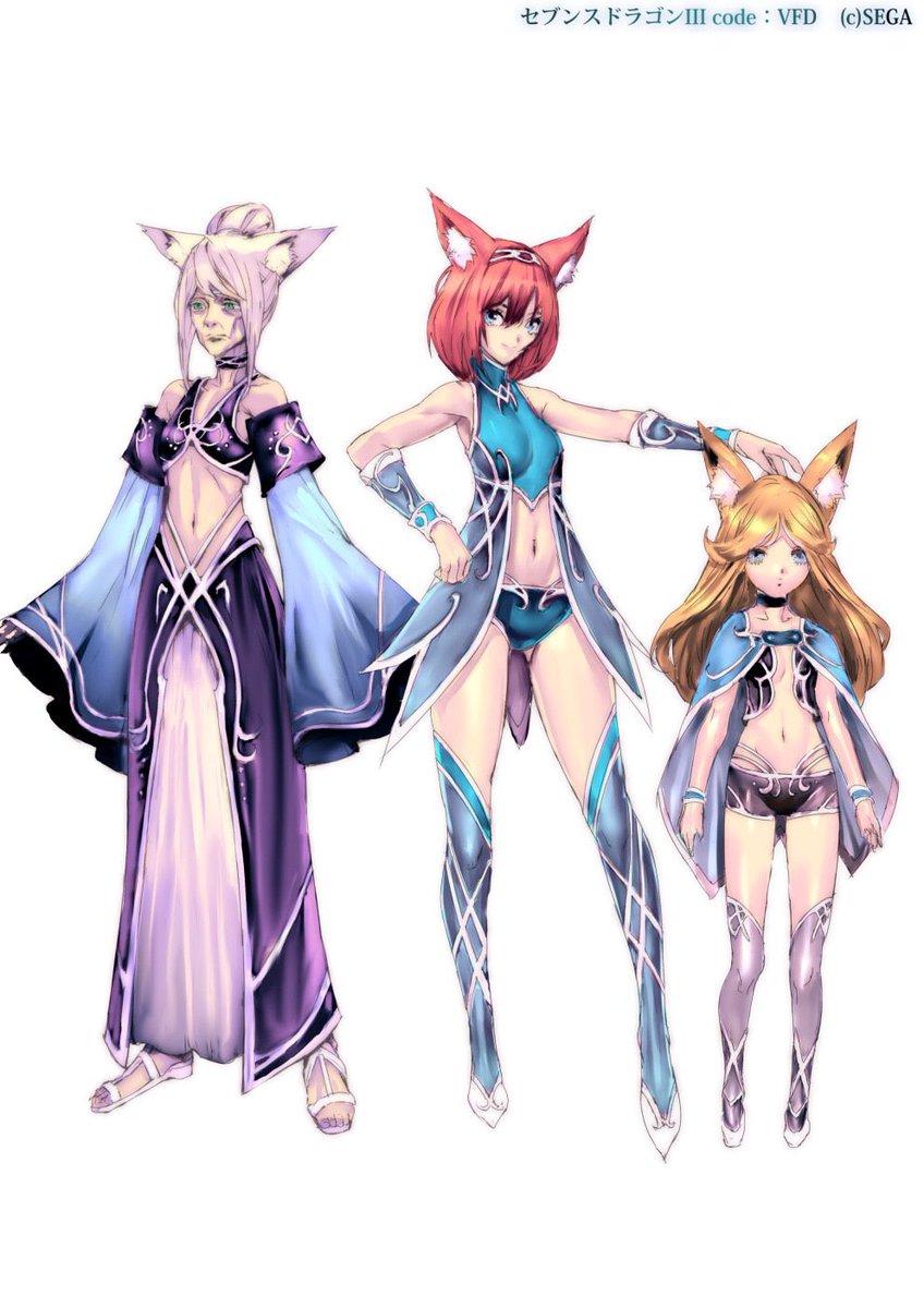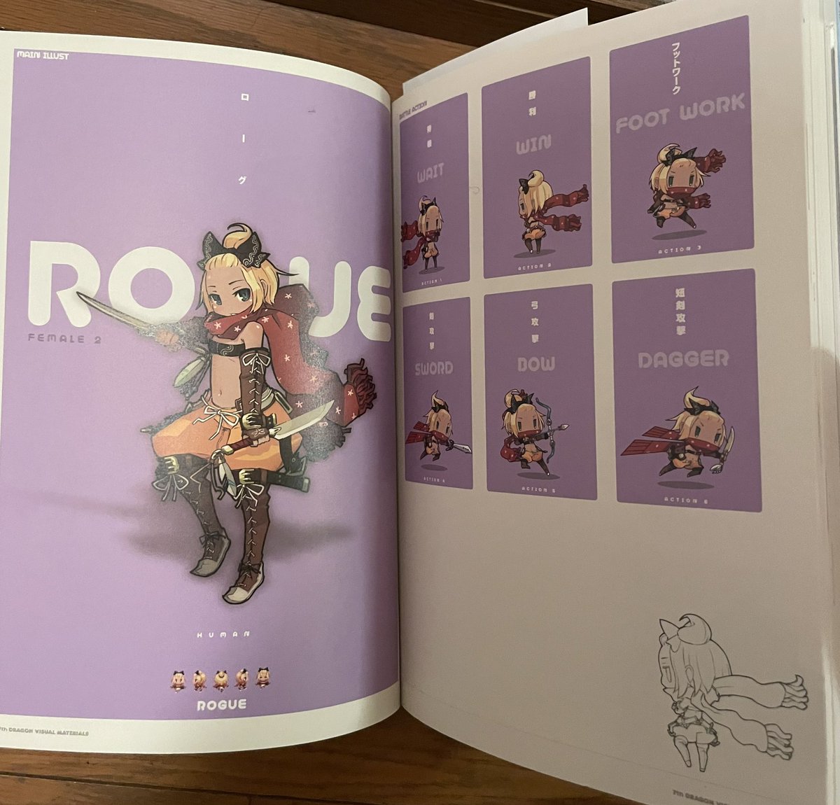 #デスクトップアーミー 前回イメージ元、#セブンスドラゴン の設定資料が遂に我が手に!フェンがわざわざアクションしにくいロングヘアなのは元ネタがココだから!何度見ても素晴らしいキャラデザイン…どれもすばらしいが女ローグは超良い…オデコとリボン褐色ペッタンセクシーで短剣2本マフラー! twitter.com/f9197971/sta…