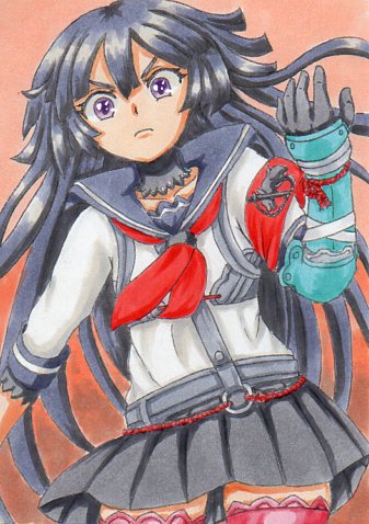 セブンスドラゴン2020の刀子ちゃん。 色塗り完了しましたー、ホントは軽い落書きくらいの気持ちで描こうかなと思ってたんだけど、なんだかんだ清書してペン入れしてってやっちゃった! #アナログイラスト #コピック #セブンスドラゴン2020