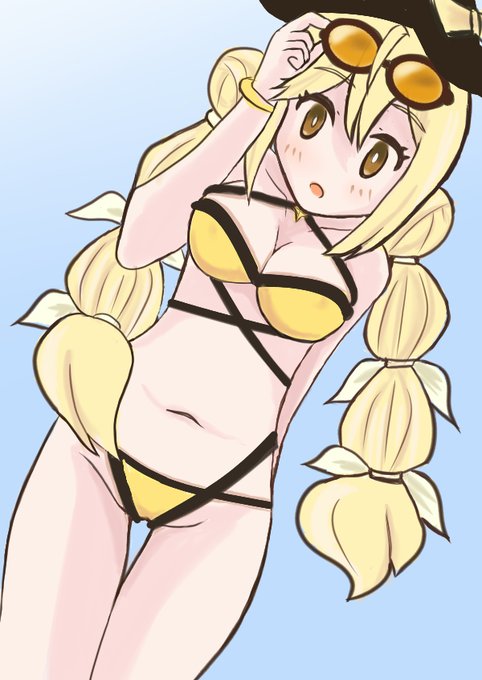 #セブスト #セブンズストーリー より、ロミリア水着Verを描きました!! 前回のエルウィンの水着姿は捏造だけど、今回は公式準拠だ。 上から覗き込んでくる感じ(目線の先にいるのはたぶんアルフかリーゼ)の構図にしたかったけどまだまだ慣れが必要だ・・・