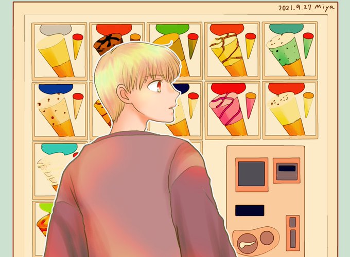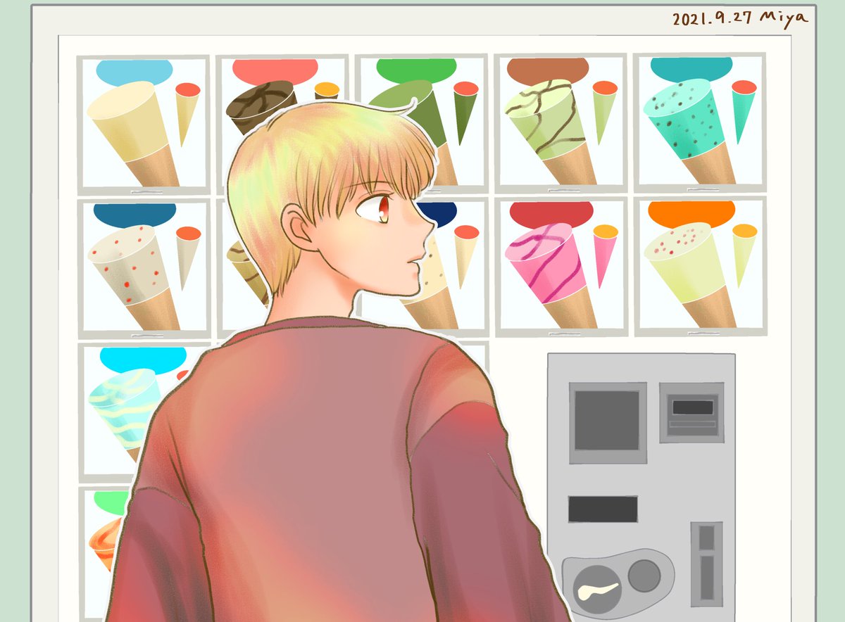 色を使い過ぎて迷子になっていました。アイスの自販機に時間をかけ過ぎちゃった😆 #イラスト好きさんとつながりたい #絵描きさんと繋がたい #アイビスペイント #秋の創作クラスターフォロー祭り #セブンティーン #一日一絵