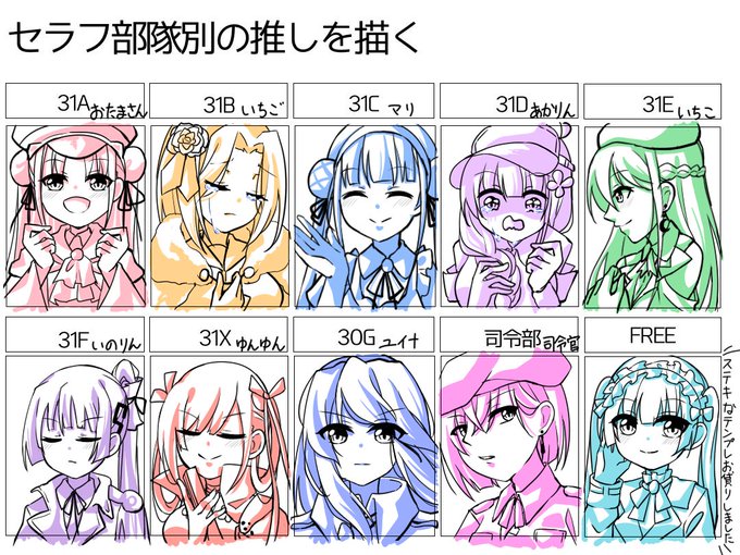 #セラフ部隊別推し描いたよ見て モクモ(@mQp23JQvMgMMBm9)様よりタグ拝借いたしました。 私がただみなさんの推しが見たいだけのテンプレ素材ですが、使っていただければ幸いです。