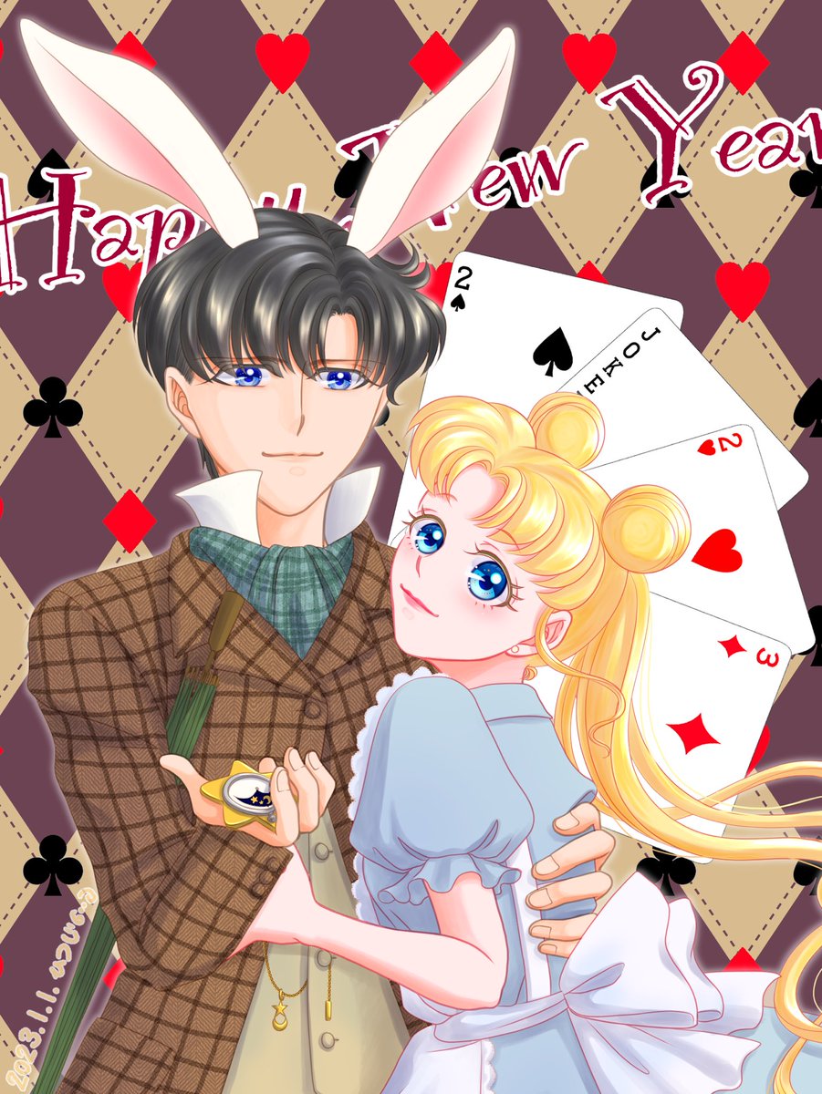 ✨🎍あけましておめでとうございます🎍✨ まもちゃんをうさぎにしたかっただけのアリス(原作)コスまもうさ🐰💕 2023年が皆様にとって良い年でありますように! Cosmosが成功をおさめ、私にダメージより喜びをもたらしますように! #セラムンイラスト部 #セラムンイラスト部まもうさ科