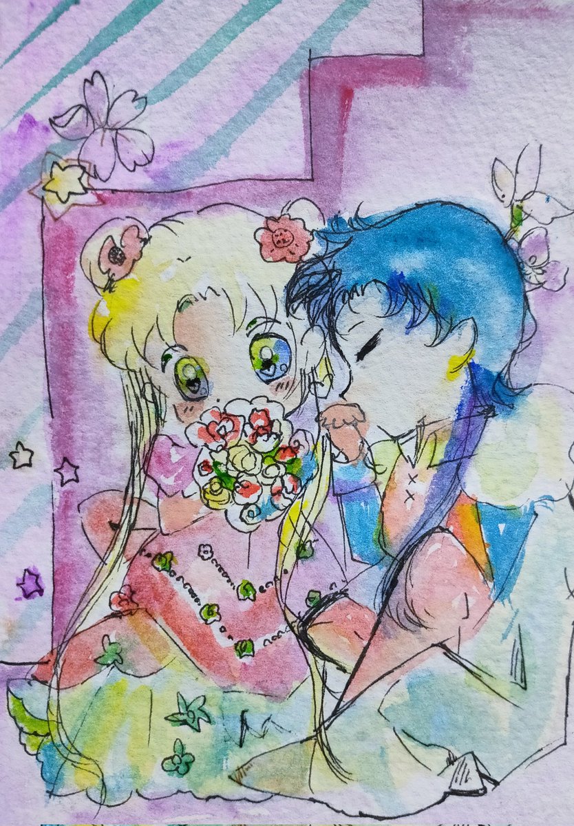 久しぶりの #星うさ です。 星野の髪の毛塗り失敗😅 めちゃ低速ですがよかったら #pixivフォロー お願いします はぴまるる☆★ pixiv.net/users/22217654 #セーラームーン #セラムン #セラムンファンアート #セラムンイラスト部 #手描きイラスト #アナログイラスト #星野光 #月野うさぎ