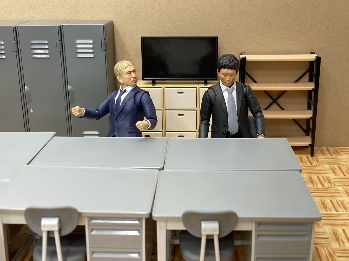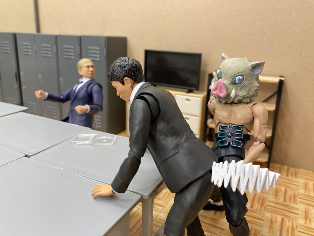 #夜のフィギュア撮影会 お題『フリー』 株主総会に向けて資料に目を通す社長とイズちゃん。そしてなぜか後ろで眺めてる不破諌!?😆 #仮面ライダーゼロワン #仮面ライダー01 #仮面ライダー #フィギュアーツ #フィギュアーツ写真部 #山田化学 #事務机 #事務イス #セリア #モンスターアーツ #オモ写